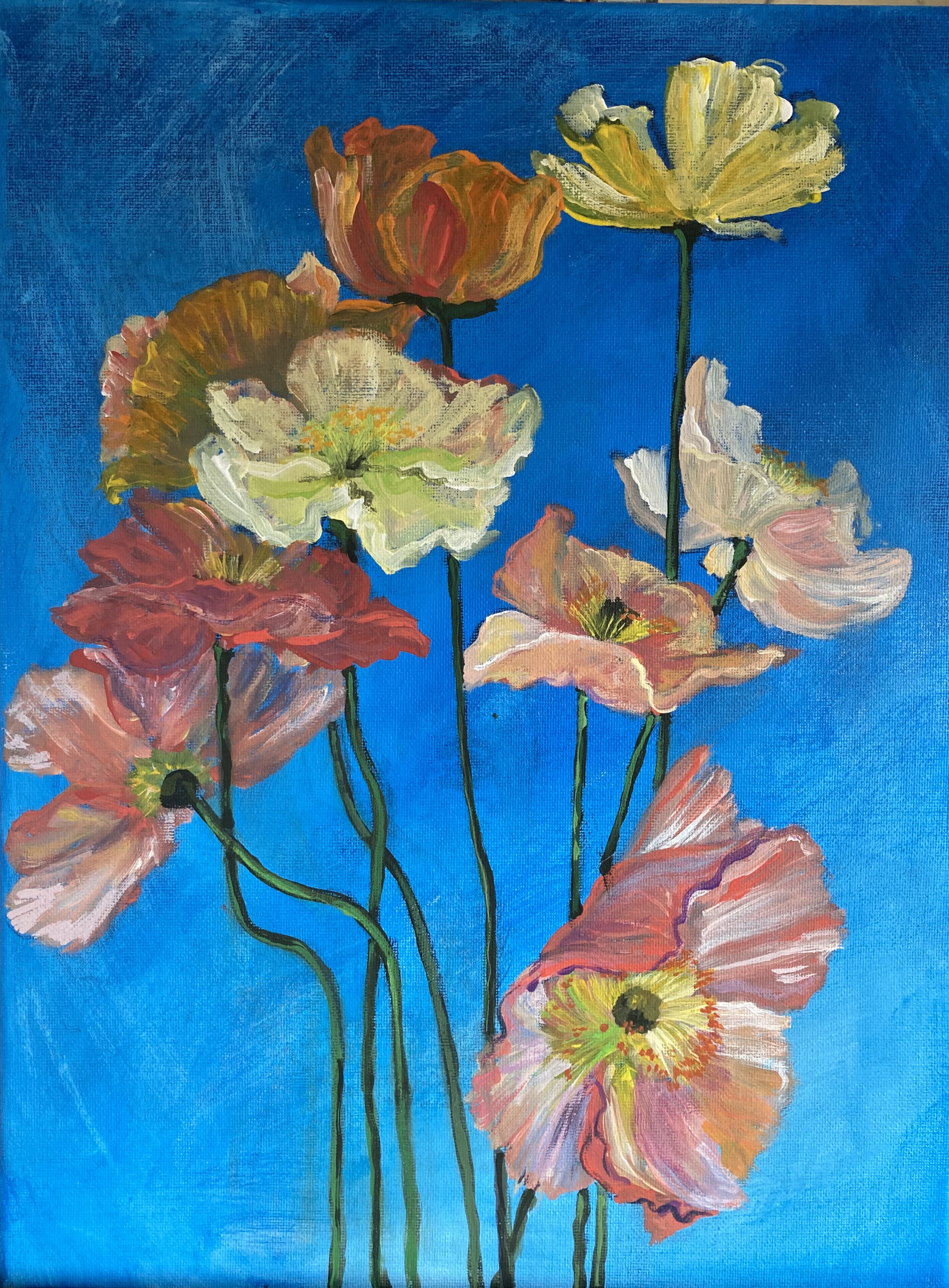 These poppies were gifted to me for a significant birthday birthday ! I loved them so much that I had to try and capture their beauty and colour in paint.