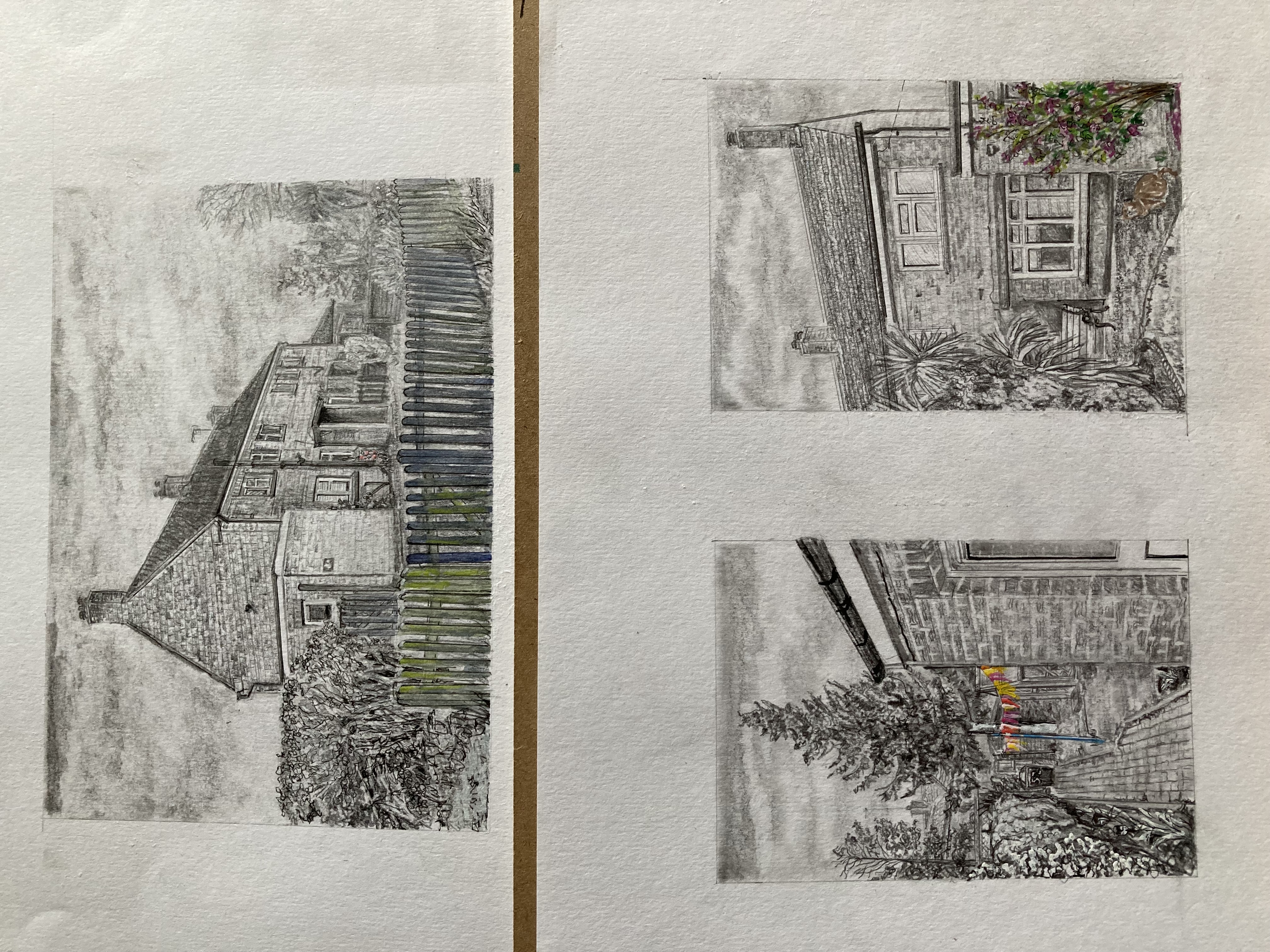 This was a commissioned piece of work to be given as a wedding present. Three different views of the newly weds first house.