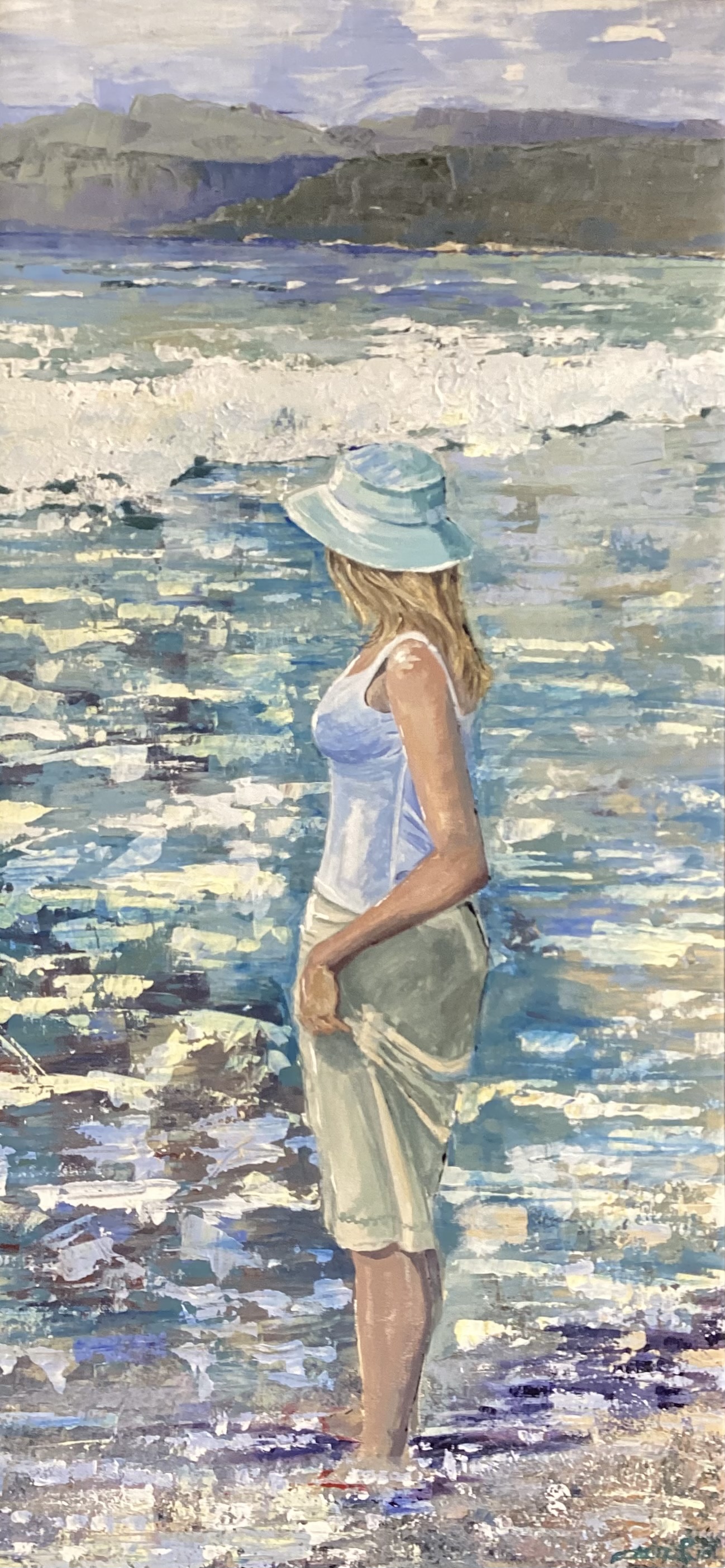This painting is actually a self portrait, paddling in the sea in Greece, while on honeymoon.