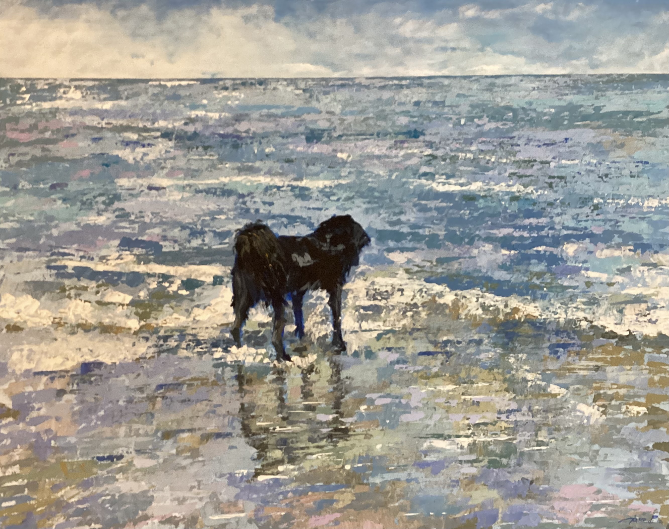 ‘Dexter’ paddling in the sea, Dorset.
